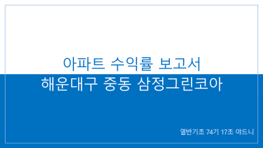 해운대구 중동 삼정그린코아 수익률 분석 보고서 [열반스쿨 기초반 74기 17조 야드니]