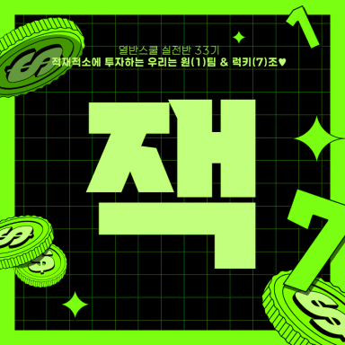 [잭][실전33기 적재적소에 투자하는 우리는 원(1)팀 & 럭키(7)조♥ 키무서]여러분들이 한 단계 성장할 수 있게 하는 것이 제 목표이고 역할이에요~