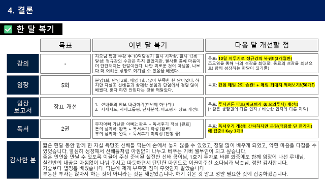 7월 특강(오하님의 ‘종잣돈 3000만원 이하 직장인 재테크로 목돈 2배 불리기’)에 이어 8월은 자모님의 소액투자 특강을 선택하였습니다. 종잣돈을 만들어 가는 중이라 소액으로도 투자할 수 있는 방법이 너무 궁금했습니다. 강의내용은 돈이 없을수록 적극적으로 투자를 해야 하는 이유, 현재 시장 상황 분석, 소액투자의 목표와 전략, 매수-전세-보유 전체 프로세