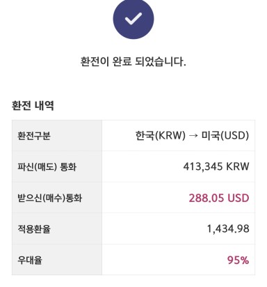 미국주식을 투자하기 위한 환전 완료
