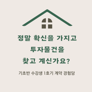[키하] 정말 확신을 가지고 투자물건을 찾고 계신가요? (기초반 수강생 1호기 경험담)