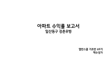 [열기 69기 29조_2리 와요, 9해줘 월부로조_책수성가] 일산 동구 강촌 우방 아파트 수익률 분석보고서