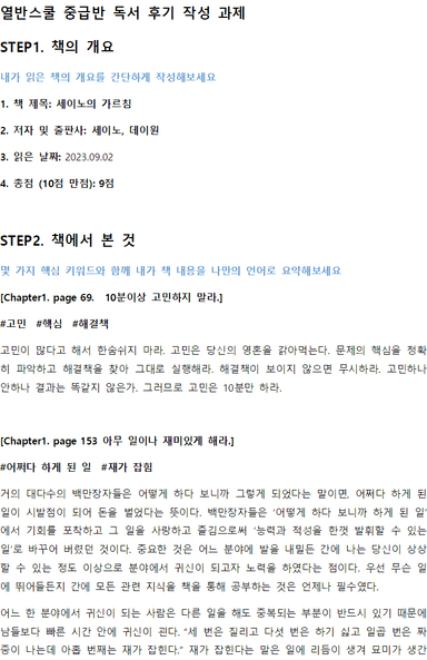 세이노의 가르침 독서후기 [열반스쿨 중급반 30기 48조 다온S]