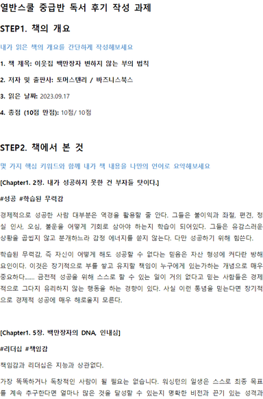 열반스쿨 중급반 이웃집 백만장자 변하지 않는 부의 법칙 [열반스쿨 중급반 30기 48조 다온S]