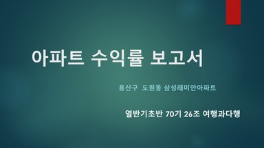 용산구 도원동 도원삼성래미안아파트 수익률 분석 보고서[열반스쿨 기초반 70기 26조 여행과다행]