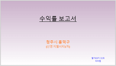 청주시 흥덕구 복대동 신영 지웰시티 1차 아파트 수익률 보고서 [열기 69기 32조 리마엠]