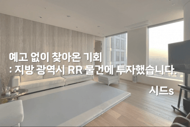예고 없이 찾아온 기회 : 지방 광역시 RR 물건에 투자했습니다. [시드s]