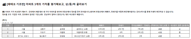 [힘내이겨내] 재테크 기초반 3주차/ 아파트 가치 비교평가 하기