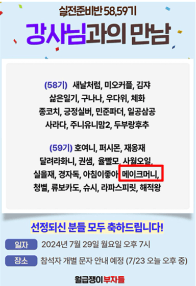 24년 7월 29일 실전준비반 59기 ''강사와의 만남' 두근두근 했던 시간~~^^ 😍😍😍[메이크머니]