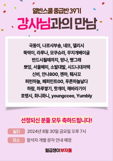 [열반스쿨 중급반 39기 29조 나르샤부숑] 강사와의 만남 수강후기