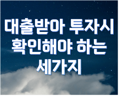 대출 써서 투자하시나요? 꼭 확인해야 하는 3가지