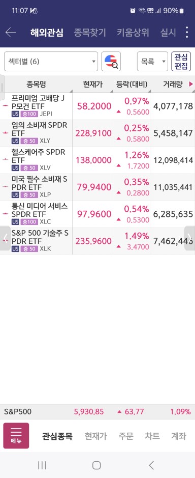 [미국주식기초반] 과제3 : 섹터 ETF 관심 그룹 만들기