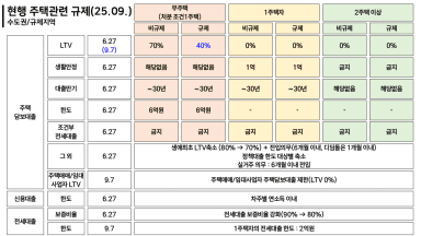 현행 주택관련 규제에 따른 최신 사항 정리(LTV, 한도, 전세대출, 규정 등)_2025년 10월 기준