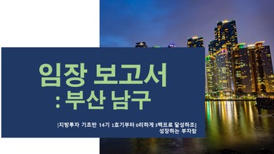 부산광역시 남구 임장보고서 [지기14기 1호기부터 0리하게 3백프로 달성하조 김스텔라]