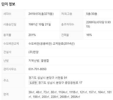성남시 분당구 서현동 시범단지 한양아파트, 삼성한신아파트 수익률 분석 보고서 [열반스쿨 기초반 66기 57조 고라파312312]