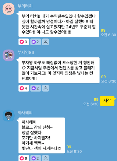 (셀프 덕담 이벤트) 여러분 3주동안 모두 수고 많으셨습니다. 우리는 이제 시작입니다. 여러분 본인에게 덕담 꼭 기억해주세요!