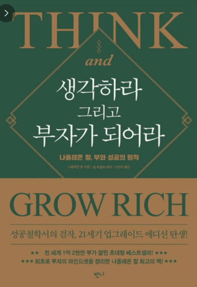 [열중 45기 한눈 안8고 앞마당 3개부터 만들조 유주5] [다독도전⑧] <생각하라 그리고 부자가 되어라> 독서 후기(나폴레온 힐의 20년 연구)