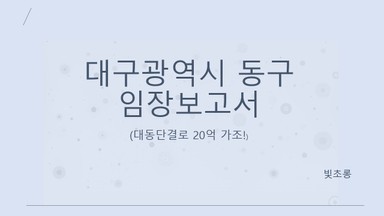 [지기17기 대동단결로 20억 가조 빛초롱] 대구동구 보고서