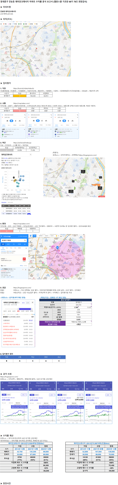 동대문구 전농동 래미안크레시티 아파트 수익률 분석 보고서 [열반스쿨 기초반 68기 78조 희망감사]