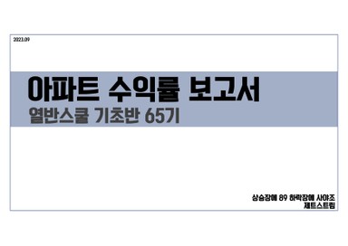 용산구 이촌동 한가람아파트 수익률 분석 보고서 [열반스쿨 기초반 65기 89조 제트스트림]