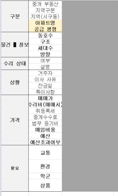 자음과 모음 멘토님의 분위기 임장 체크리스트 (구글 스프레드 시트 ver)