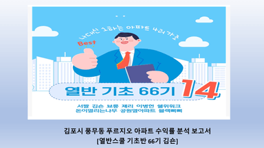 경기도 김포시 풍무동 풍무 센트럴 푸르지오 수익률 분석 보고서 [열반스쿨 기초반 66기 14조 김숀]