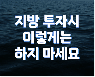 지방 투자로 돈 벌려면 "하지 말아야 할" 두가지 [우도롱]
