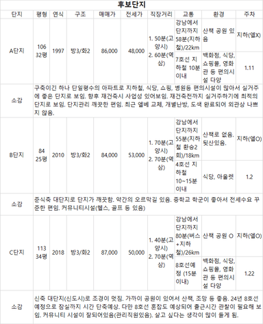 : [내집마련 기초반 39기 14조 수용성] 수용성의 내집마련 예산 계산 및 후보 단지 정리하기