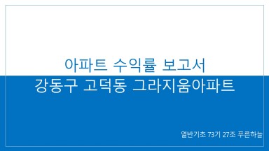 강동구 고덕동 그라시움 아파트 수익률 분석 보고서 [열반스쿨 기초반 73기 27조 푸른하늘]