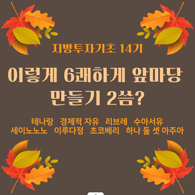 [지기 14기 이렇게 6쾌하게 앞마당 만들기 2씀? 테나랑] 지방투자 기초반 4주차 강의후기