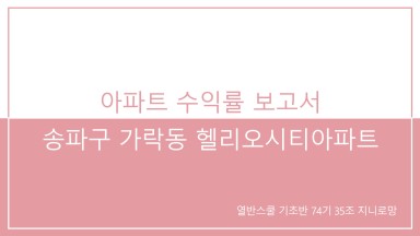 송파구 가락동 헬리오시티 아파트 수익률 분석 보고서 [열반스쿨 기초반 74기 35조 지니로망]