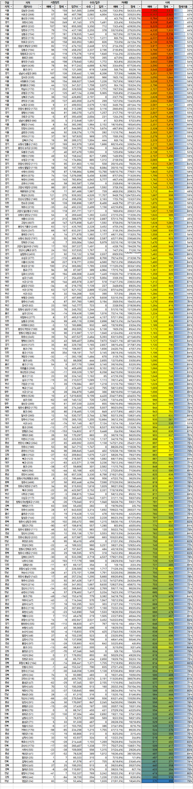 [지기 14기 행운의 49팔구조! 김안녕] 2023년 11월 전국 평당가/전세가/전세가율 정리 (+ 엑셀 자료)