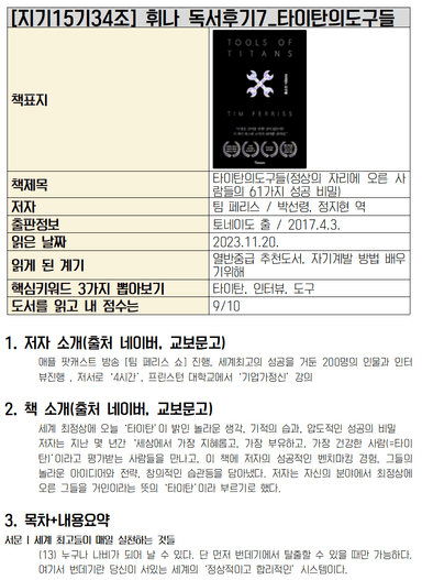 [지기15기34조 휘나] 독서후기7_타이탄의도구들