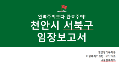 [지기14기 7흙같은 어둠에서도 포기1도안하조 내꿈은투자자]천안시 서북구 임장보고서