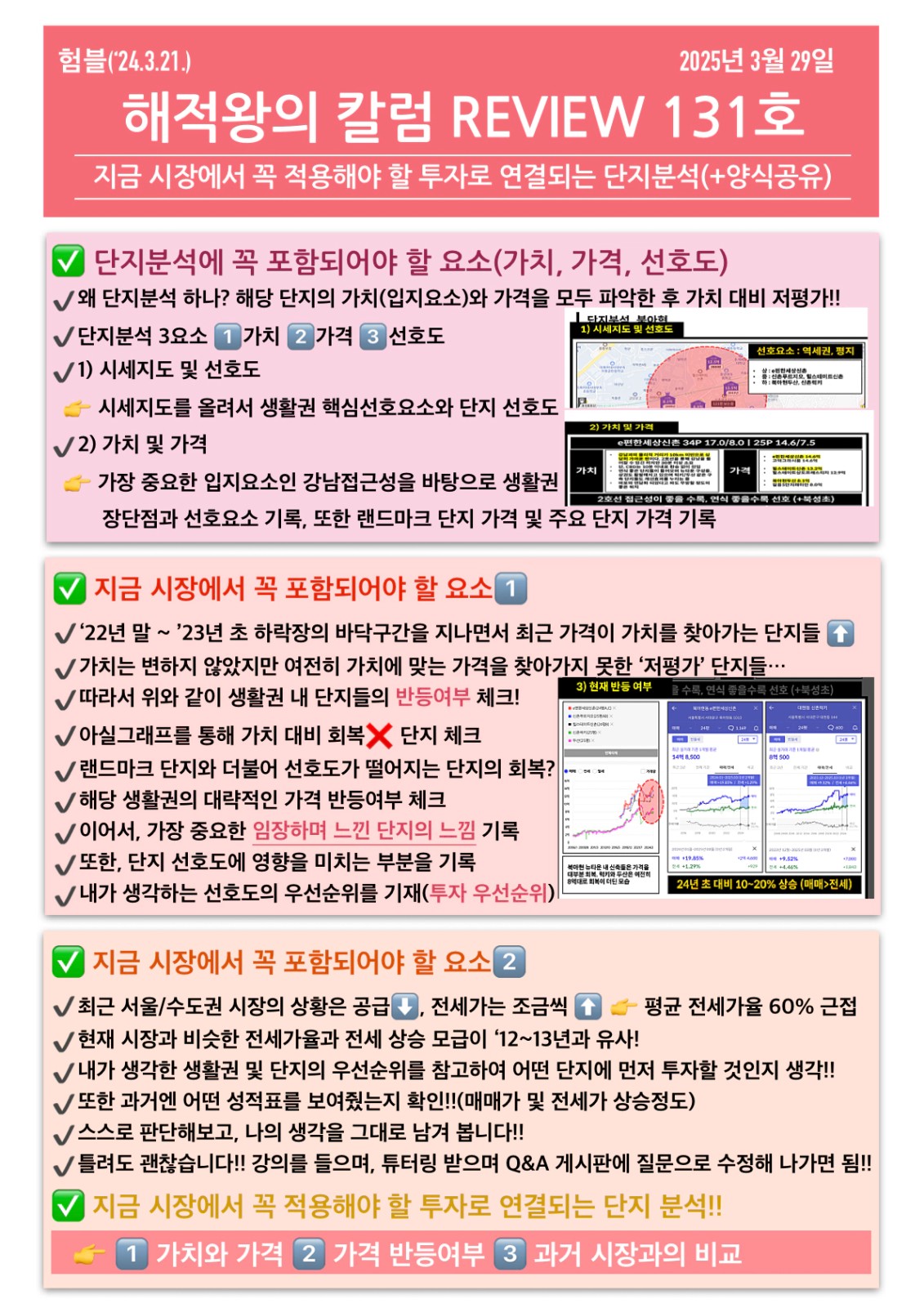 [해적왕의 칼럼리뷰 #131] 험블_지금 시장에서 꼭 적용해야 할 투자로 연결되는 단지분석(+양식공유)