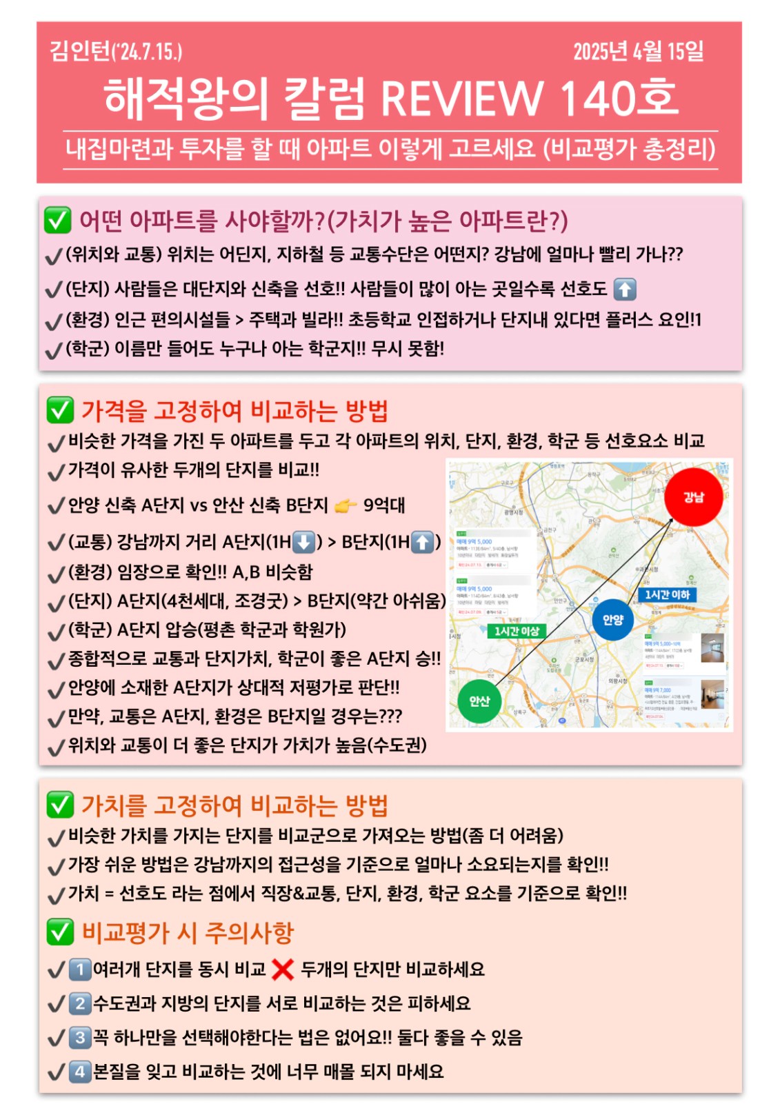 [해적왕의 칼럼리뷰 #140] 김인턴_내집마련과 투자를 할 때 아파트 이렇게 고르세요 (비교평가 총정리)
