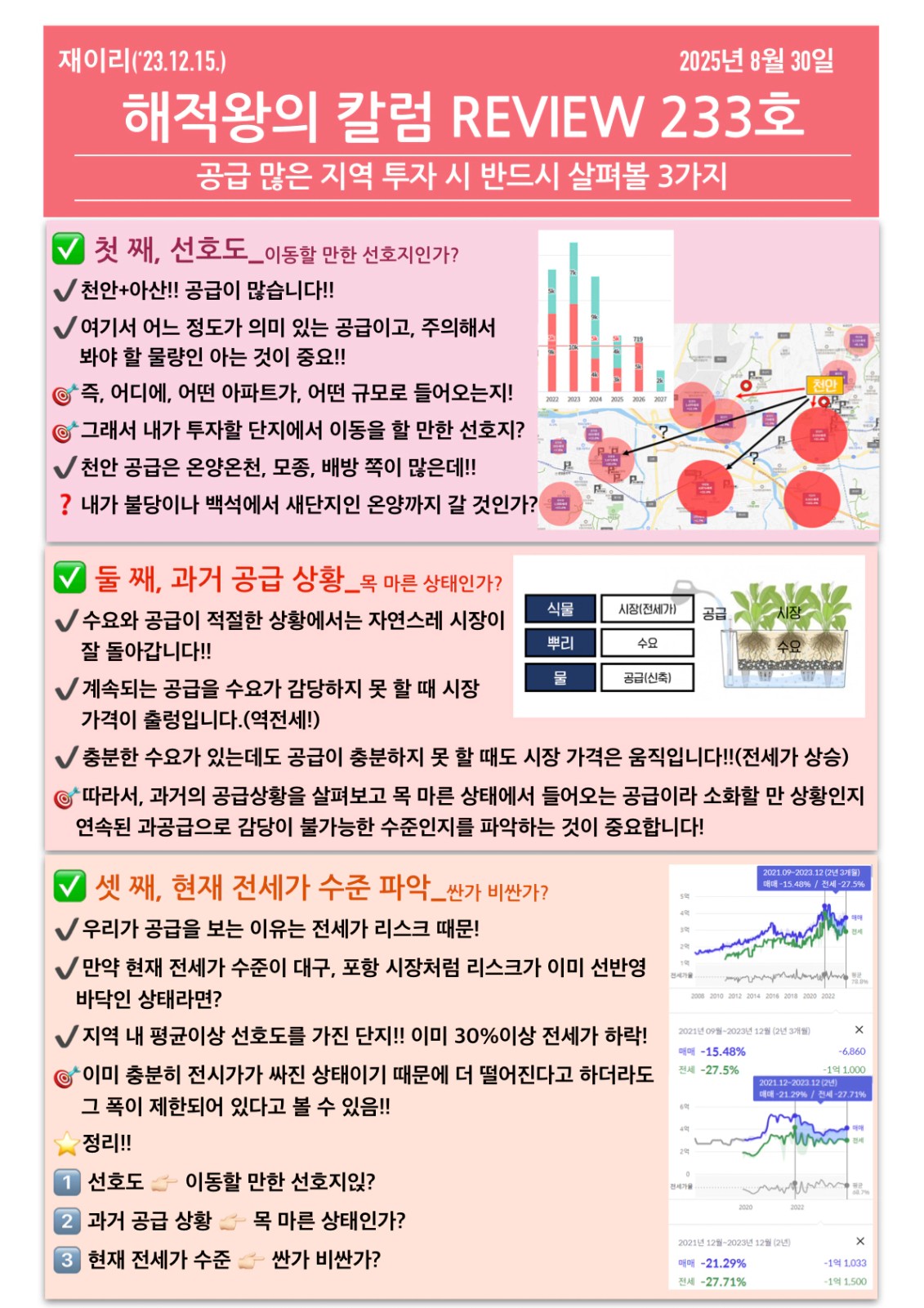 [해적왕의 칼럼리뷰] #233호 재이리_공급 많은 지역 투자 시 반드시 살펴볼 3가지