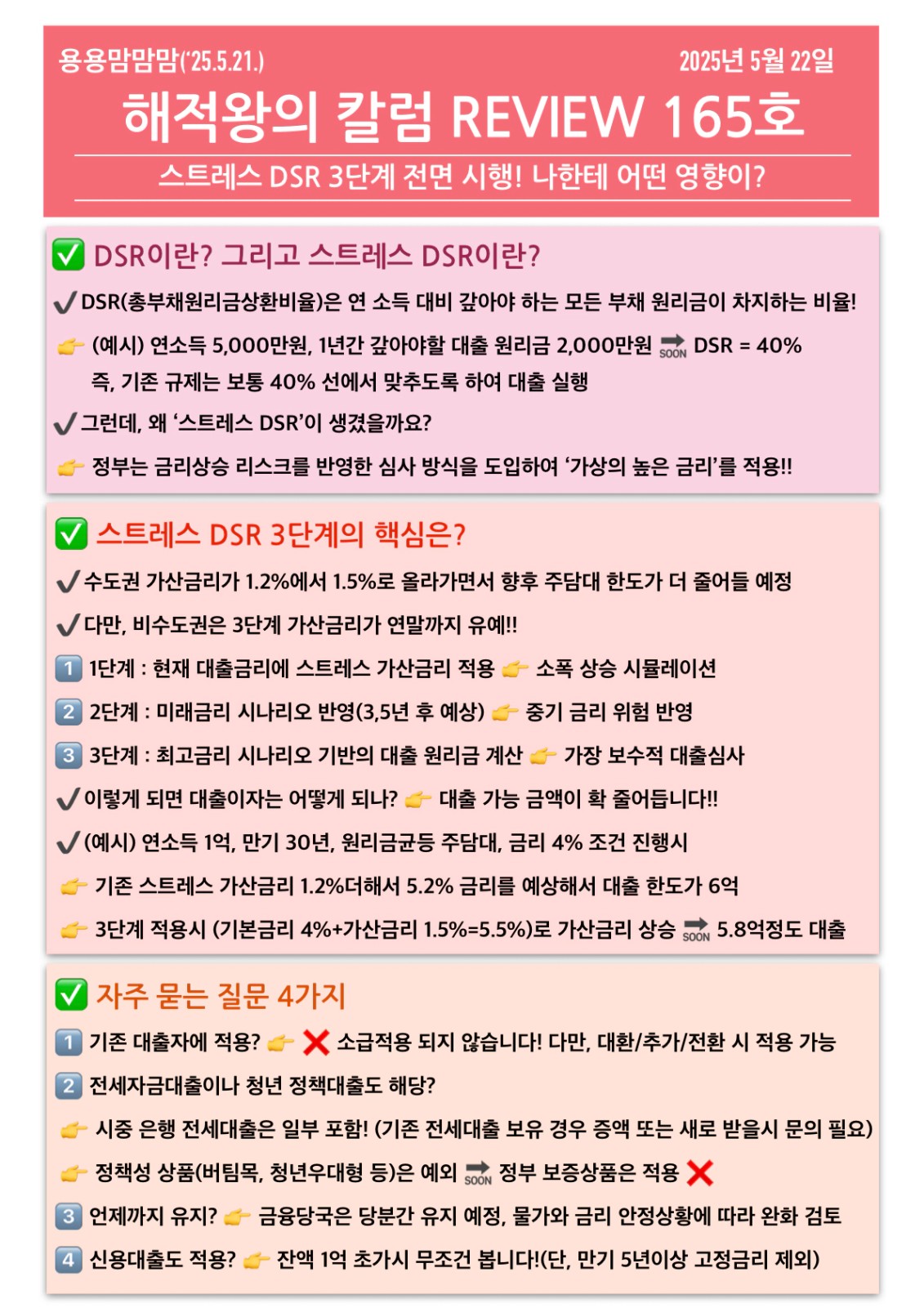 금융당국의 스트레스 DSR 전면 시행에 대해