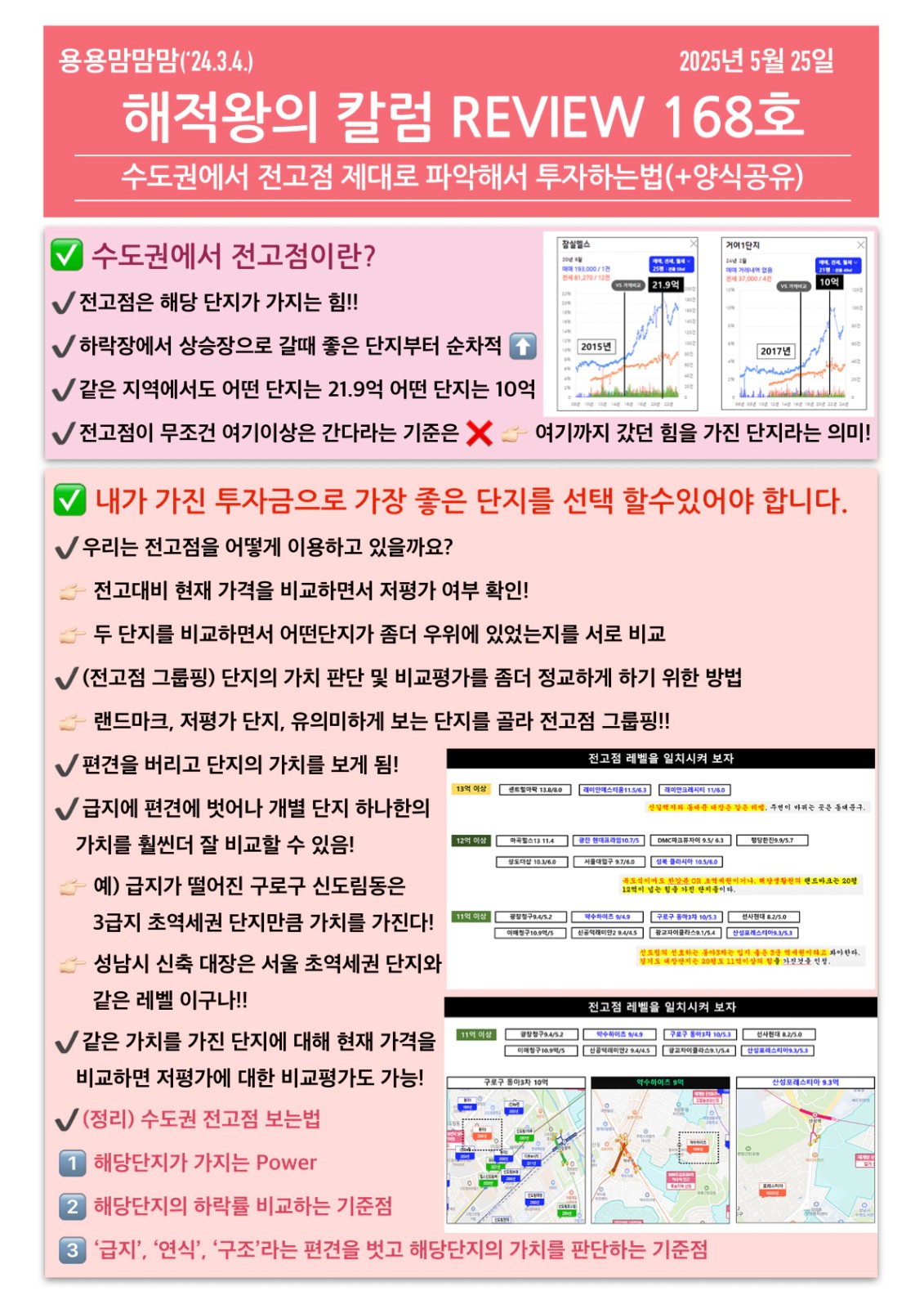 [해적왕의 칼럼리뷰 #168호] 용용맘맘맘_수도권에서 전고점 제대로 파악해서 투자하는법(+양식공유)