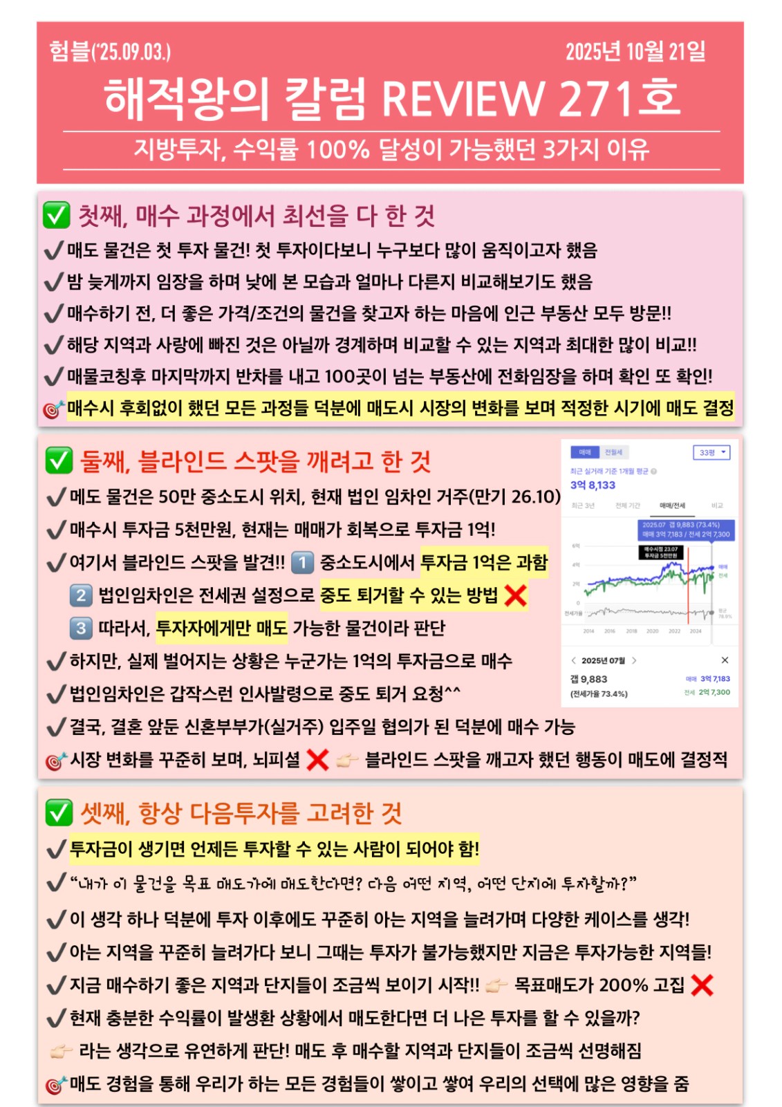 🎯 지방투자에서 100% 수익율 달성하기 위하여 3가지를 꼭 챙기자