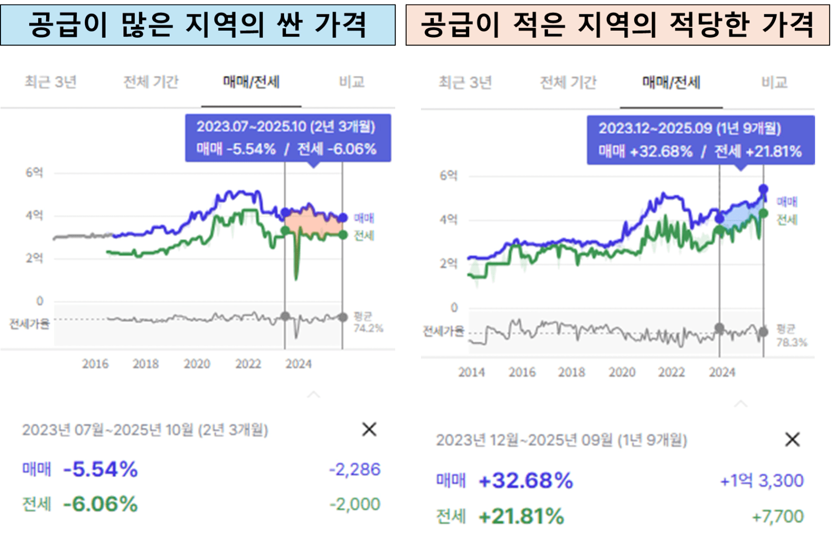 → 매매가가 저렴한데, 공급이 줄어들어 전세가격이 상승하고 있는가?