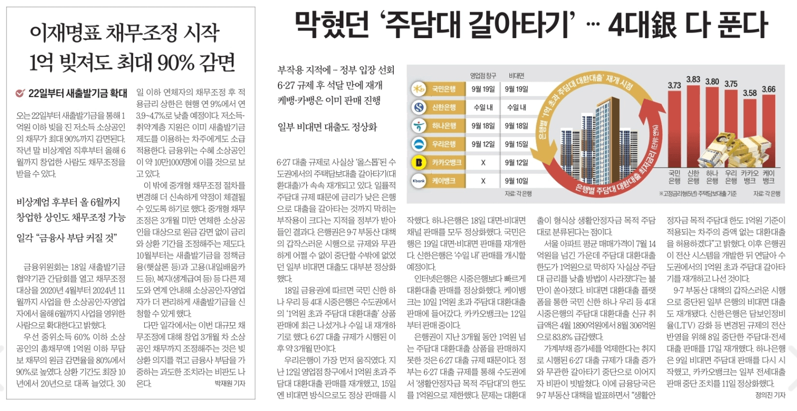 - 9.12에 1억원 초과 주담대 대환대출 판매 재개