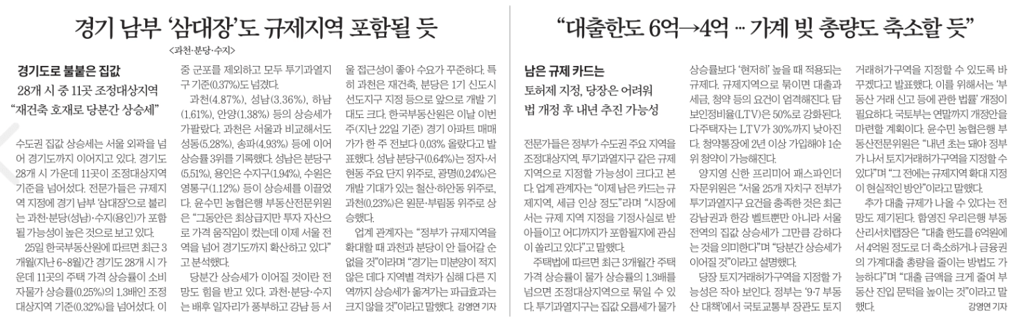 - 몇주째 계속 상승률이 커졌다는 기사가 올라옴. (25개구 전체가 투기과열지구 범위에 들어갔다니)