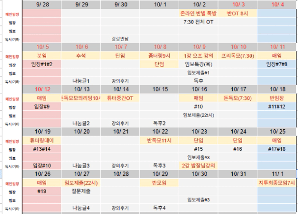 지난 번에 채우지 못한 것도 함께 마무리 해나가보고자 합니다.
