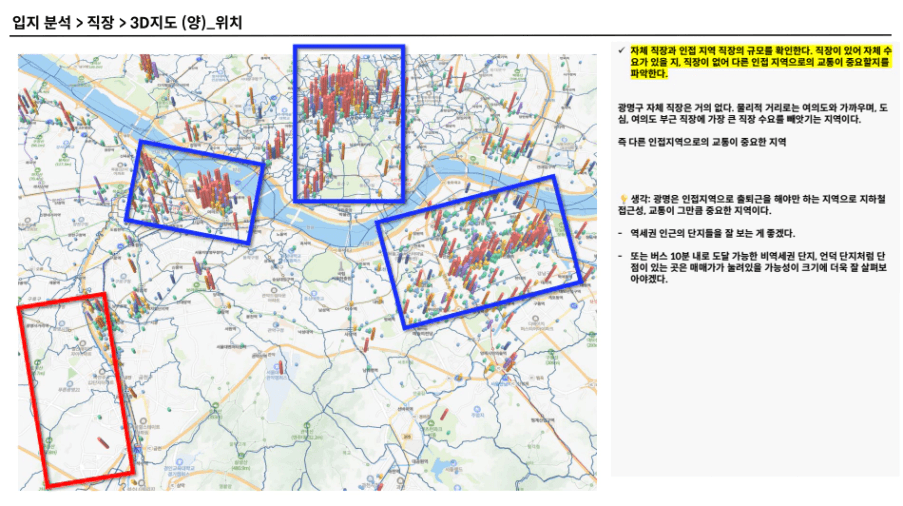 위의 장표를 보면 3대 업무지구에는 직장의 양이 많지만