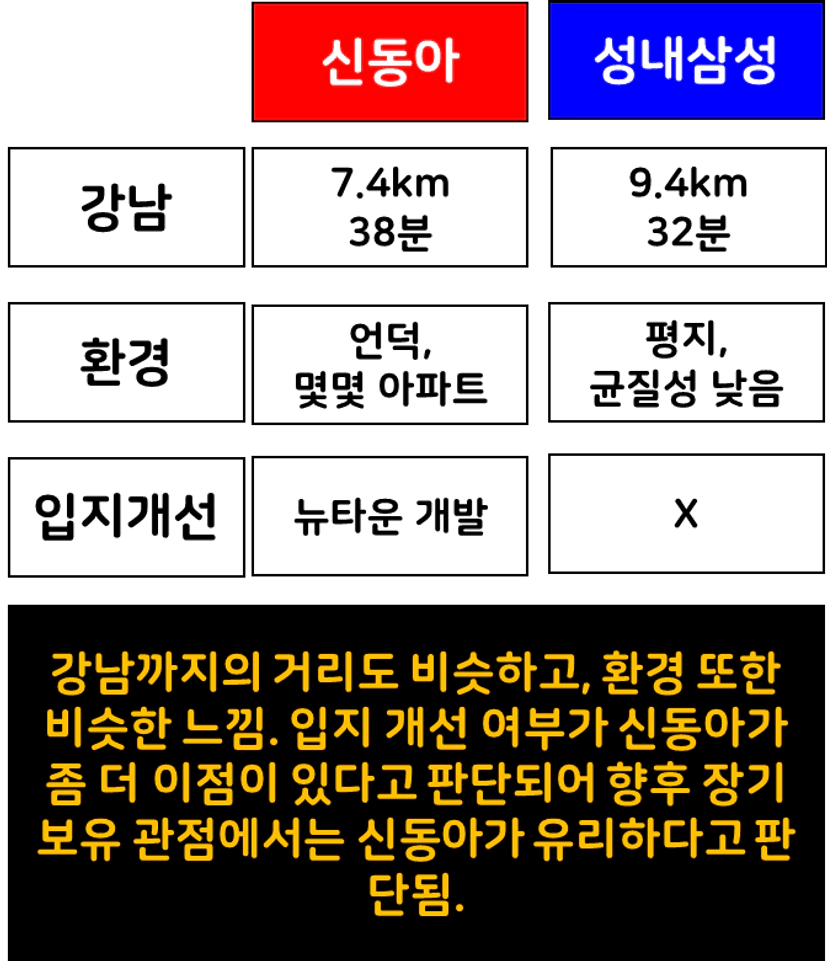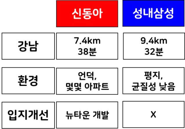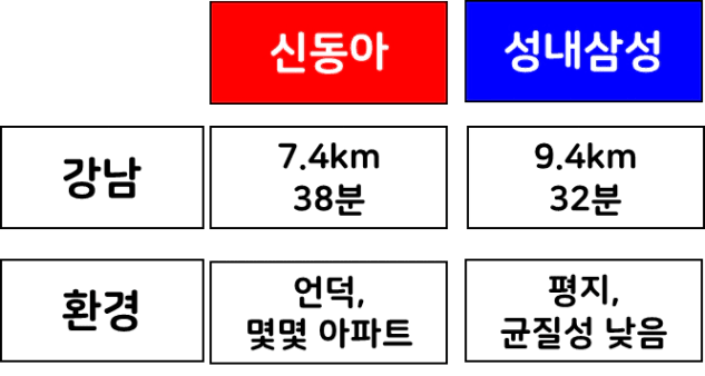 어떤 단지가 더 나은지를 적어보는 겁니다.