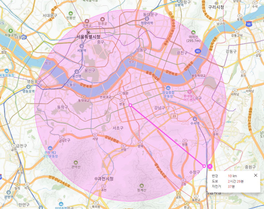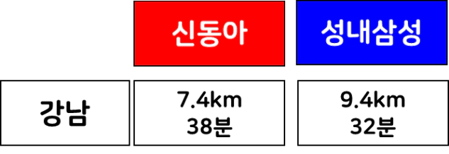 첫째, 강남까지의 거리 (물리적, 시간적)