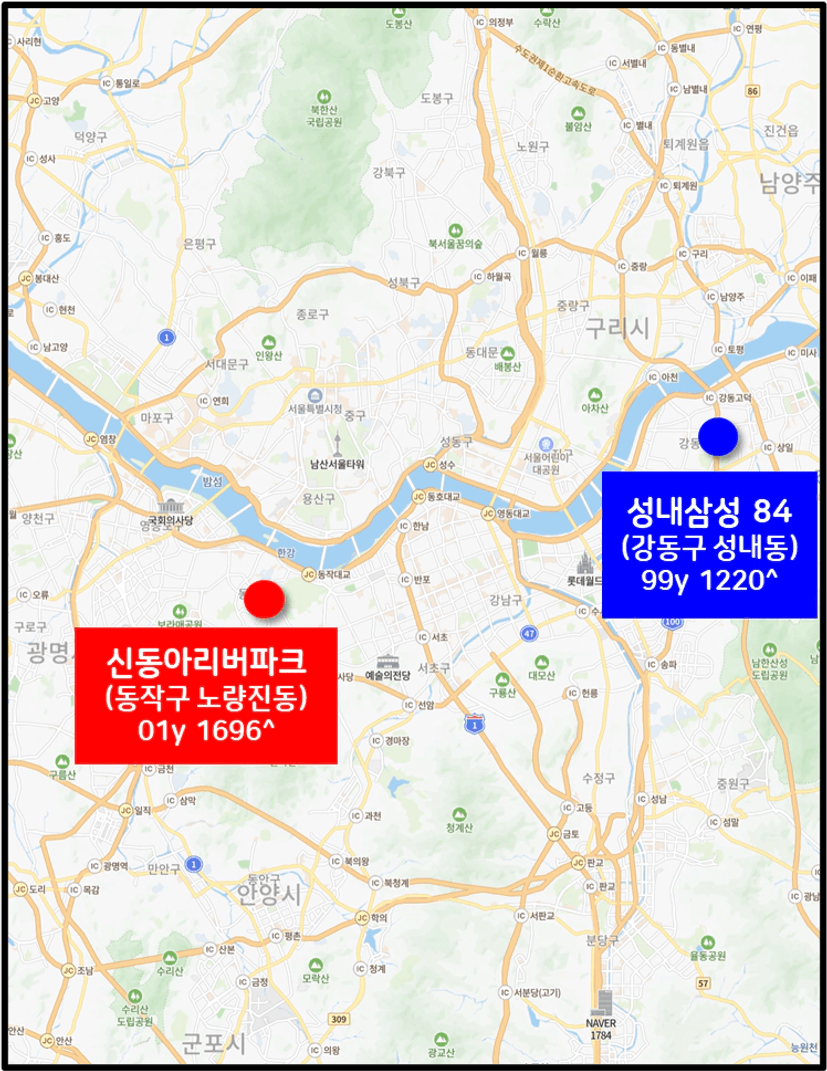 신동아리버파크가 조금 더 낫다고 판단했습니다.