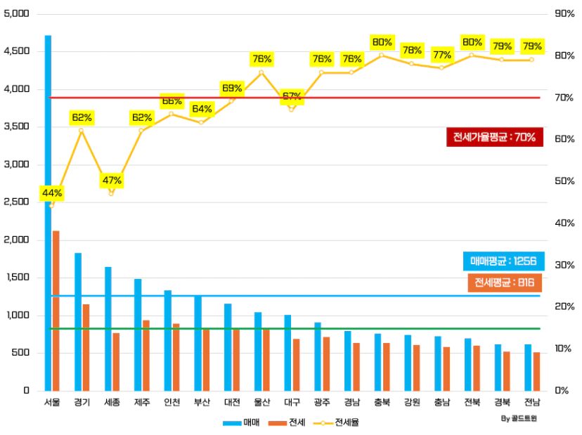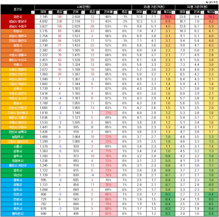 매매, 전세, 전세가율, 투자금, 증감