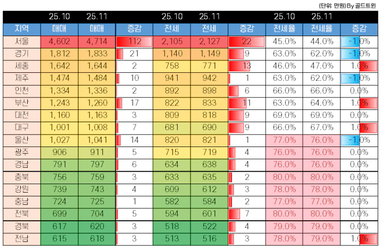 구분 | 매매 | 전세 | 매매 | 전세 |